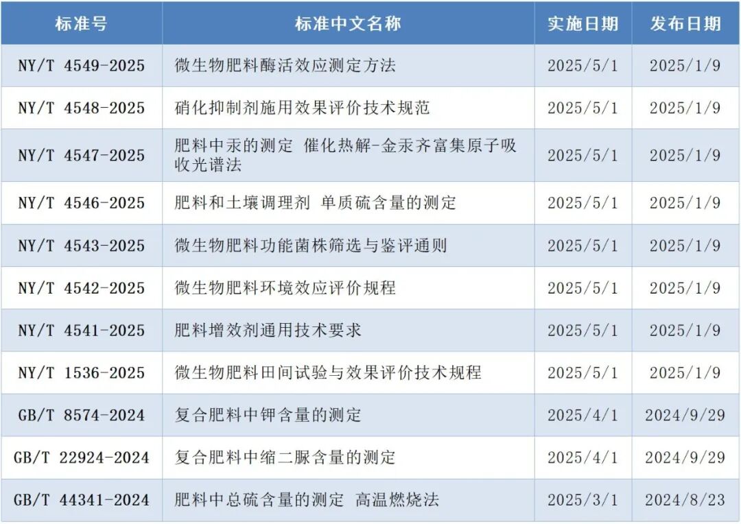 2025年农业与标准化领域迎来重要更新!从今年3月1日起,肥料行业已有11项现行标准正式实施,规范生产、保障质量,将关乎全行业发展与农业生产,快来通过表格了解这些影响深远的标准吧!