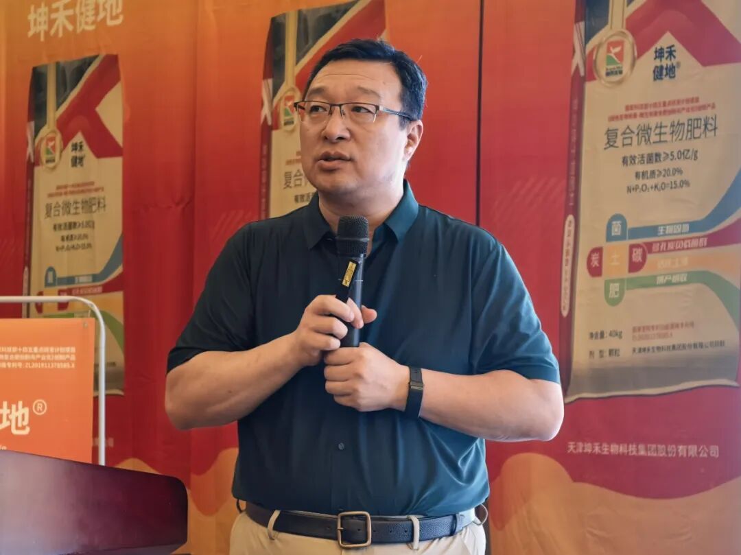最后,坤禾生物营销总监韩志文介绍了坤禾生物的战略规划并对大会进行了总结,再次强调了坤禾生物致力于推动绿色农业发展的使命与决心。他指出,坤禾生物将继续深化“技术深度×生态宽度”双轮驱动战略,纵向深耕微生物-生物炭技术壁垒,横向构建“政策-科研-渠道-农户”共生网络,不断提升企业的核心竞争力,不遗余力地推动绿色农业发展。