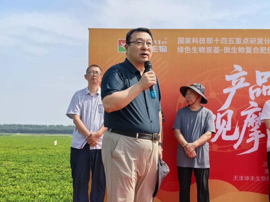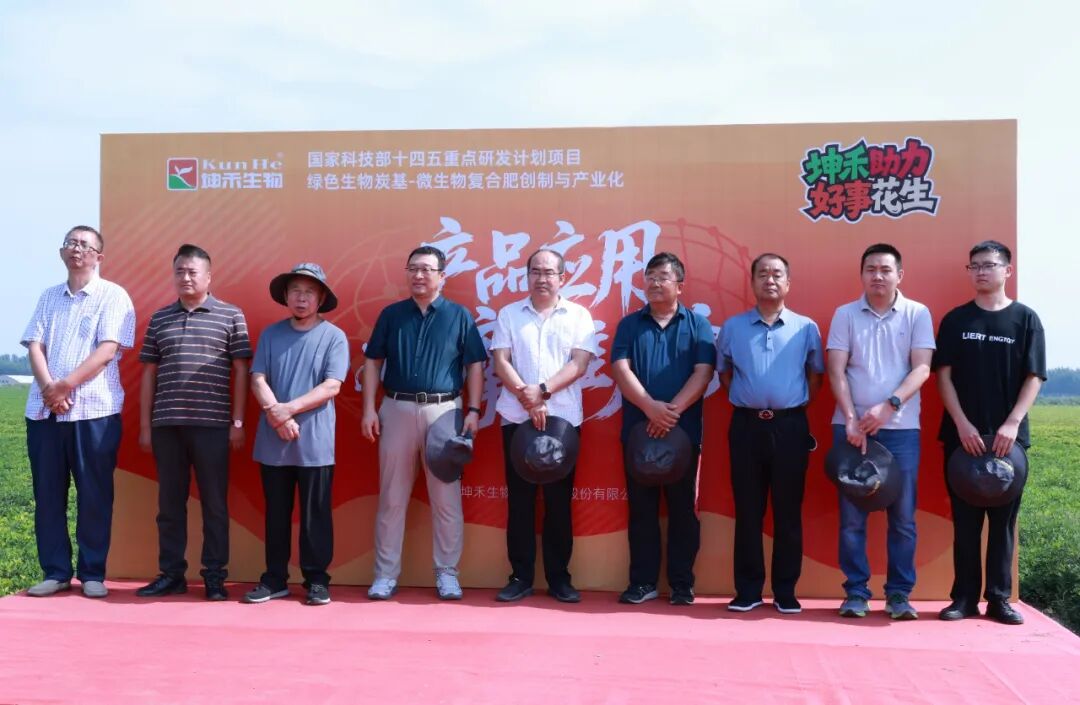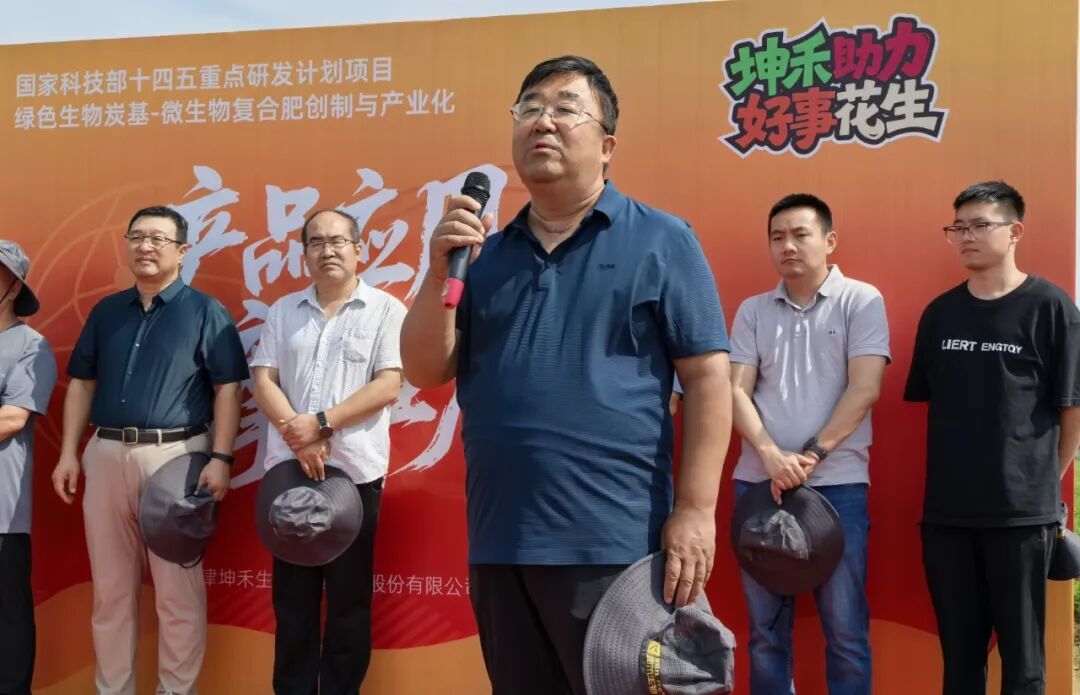 秋风送爽,硕果盈枝。2025年9月11日,由天津坤禾生物科技集团股份有限公司(以下简称“坤禾生物”)主办、滦南鑫胜农药经销处协办的国家科技部十四五重点研发计划项目《绿色生物炭基-微生物复合肥创制与产业化》新产品应用观摩推广会在美丽的冀东平原滦南圆满成功!国家花生产业技术体系唐山实验站站长刘晓光、河北省花生产业体系岗位科学家王庆雷、河北省农林科学院植物保护研究所所长郭庆港、南京师范大学教授赵军、中国科学院生态环境研究中心李艳博士、滦南农业农村局杨瑞会、河北天善生物技术有限公司研发主任吕大飞及工程师严子深、北京金必来生物科技有限公司研发部部长成宜德、鑫胜农药经销处总经理王新、坤禾生物技术总监赵钢勇、坤禾生物营销总监韩志文等领导出席了本次会议。观摩会现场汇聚了来自科研院所、高校、企业及全国各地农资经销商、种植大户代表200余人,共同见证了这一创新科技成果在田间地头的卓越表现。