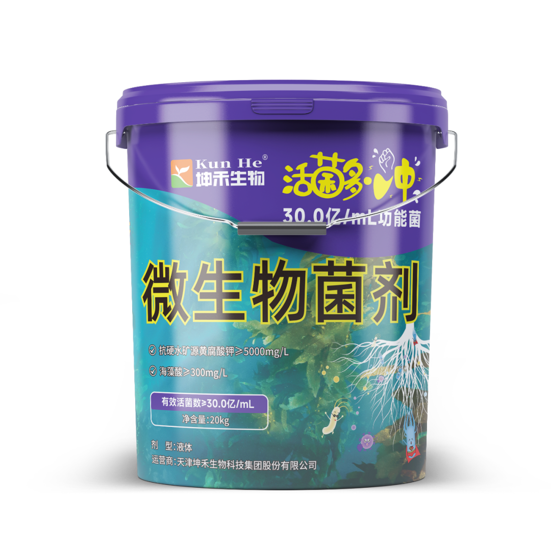 活菌多冲微生物菌剂,有效活菌数升级为30.0亿/mL,科学配伍植物益生菌,富含枯草芽孢杆菌、地衣芽孢杆菌、贝莱斯芽孢杆菌、多粘类芽孢杆菌,添加抗硬水矿源黄腐酸钾、海藻酸、氮磷钾,利于有效功能菌活性发挥,促进植物生根-出苗、健壮生长-防病抗逆、配合水溶肥促进吸收。本产品能够降解转化土壤有机质和秸秆有机肥,产生小分子有机酸和微生物多糖,促进根系吸收有机养分和能量;分解活化土壤矿物质和矿质肥料,释放水溶性和枸溶性磷钾硅钙镁锌铁等养分,促进根系吸收矿物质养分;改善作物根际土壤有益菌群,疏松土壤、提升地温、培肥地力、保护根系、促进生长、健壮植株;有效菌定殖生长后,能抑制镰刀菌、轮枝菌、丝核菌、腐霉、疫霉、农杆菌、欧文氏菌等多种植物病原菌,促进植株健壮。