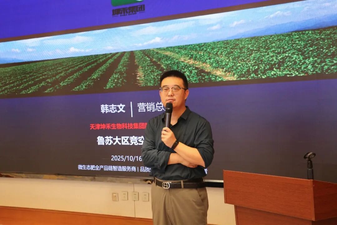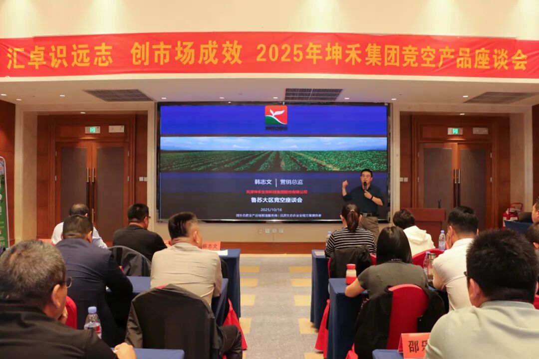 2025年10月16日,由天津坤禾生物科技集团股份有限公司鲁苏大区主办的“汇卓识远志 创市场成效——2025坤禾生物竞空产品座谈会”在山东潍坊成功举办!坤禾生物鲁苏大区销售团队与来自山东、江苏等地优秀经销商携各自业务团队共50余人齐聚一堂,为应对农资市场的共同挑战与压力,以“竞空”产品推广为契机,共商市场破局之道与未来增长新路径。坤禾生物营销总监韩志文、市场部部长马静出席会议。