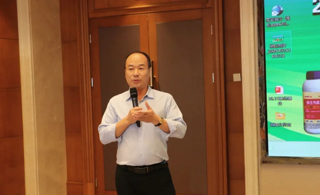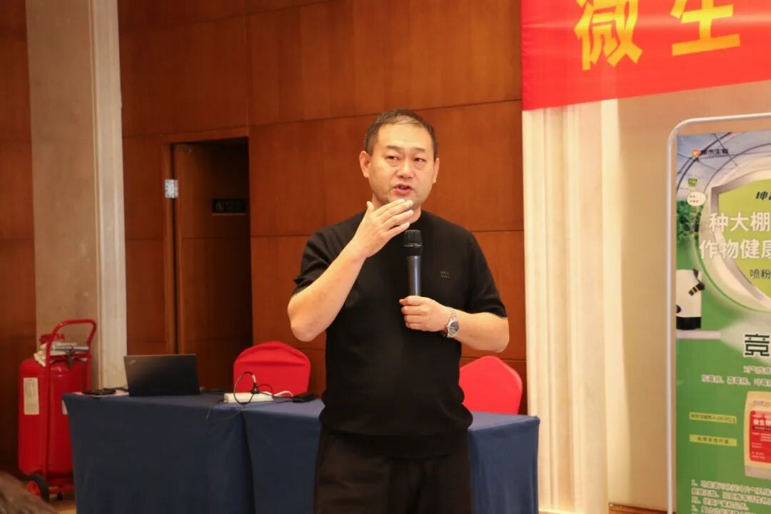 坤禾生物营销总监韩志文系统介绍了集团发展历程、技术布局与核心产品优势。他特别介绍了坤禾生物牵头的国家科技部“十四五”重点研发计划项目“绿色炭基微生物复合肥的创制与产业化”,该项目以“菌-炭-肥-土”技术主线,通过创新技术和工艺,成功开发出5类新型复合微生物肥料,有效解破解了微生物肥料行业产品功能单一,货架期短、效果不稳定等痛点。